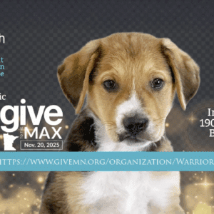 Join us for an unforgettable evening as we rally together to help Warrior Dog Rescue reach our fundraising goal for Give to the Max 2025! Enjoy a night filled with excitement, live music by Mike Mraz, community spirit, great food, drinks, and a shared passion for saving lives. Please join us on Thursday, November 20th, from 5-8pm at Ineffable Brewing Co. Let’s make a difference, together! https://www.givemn.org/organization/Warrior-Dog-Rescue