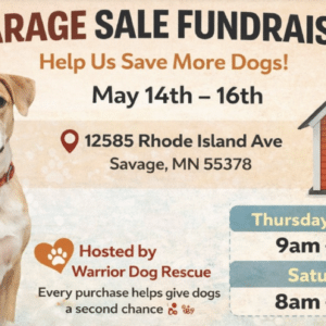 Please join us on May 14th-16th for Warrior Dog Rescues Garage Sale Fundraiser! Thursday and Friday from 9am – 6pmSaturday from 8am-4pm We can’t wait to see you all there! Located in the back of the building.