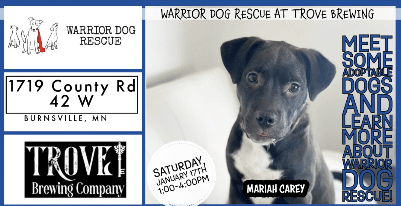 Join us Saturday January 17th 1-4pm at Trove Brewing Co to meet some adoptable dogs & pups!!