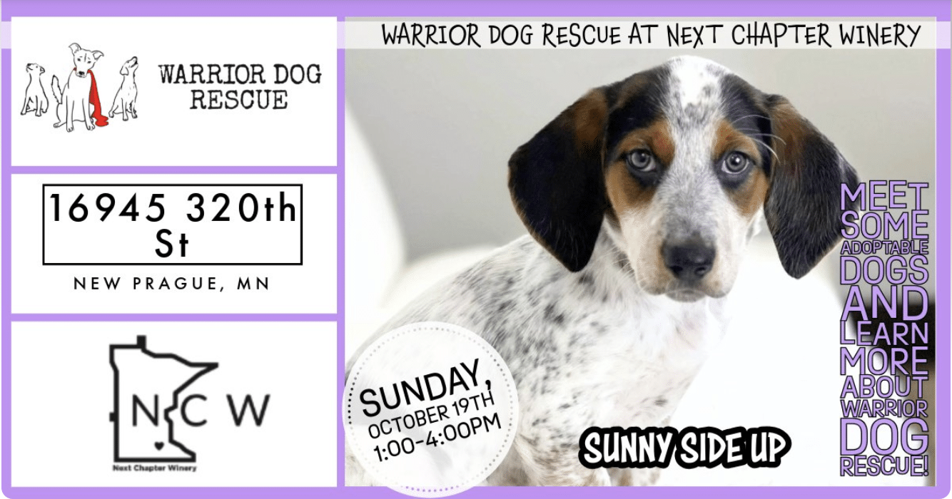 Join us at Next Chapter Winery Sunday October 19th from 1-4 pm to meet some of our adoptable pups!