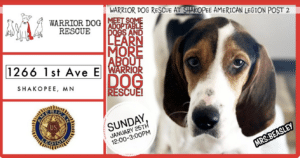 Join us at Shakopee American Legion on Sunday January 25th from 12 -3 pm to meet some adoptable dogs!
