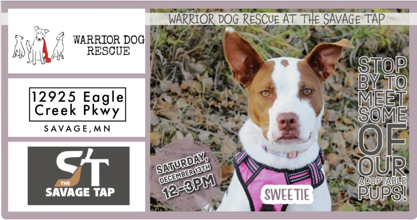 Join us at The Savage Tap on Saturday, December 13th from 12:00-3:00pm to meet some of our adoptable pups!