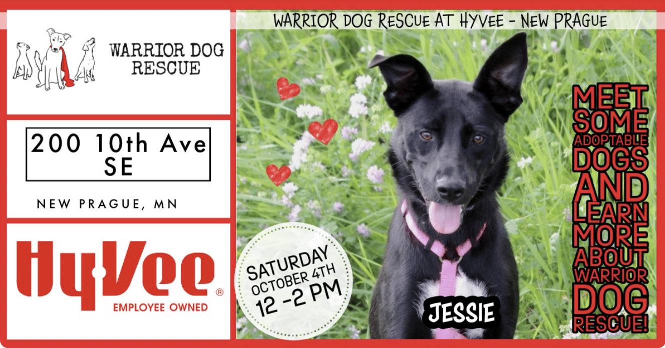Please join us on Saturday October 4th 12 – 2pm at Hyvee New Prague to meet some of our adoptable pups and get some shopping in!