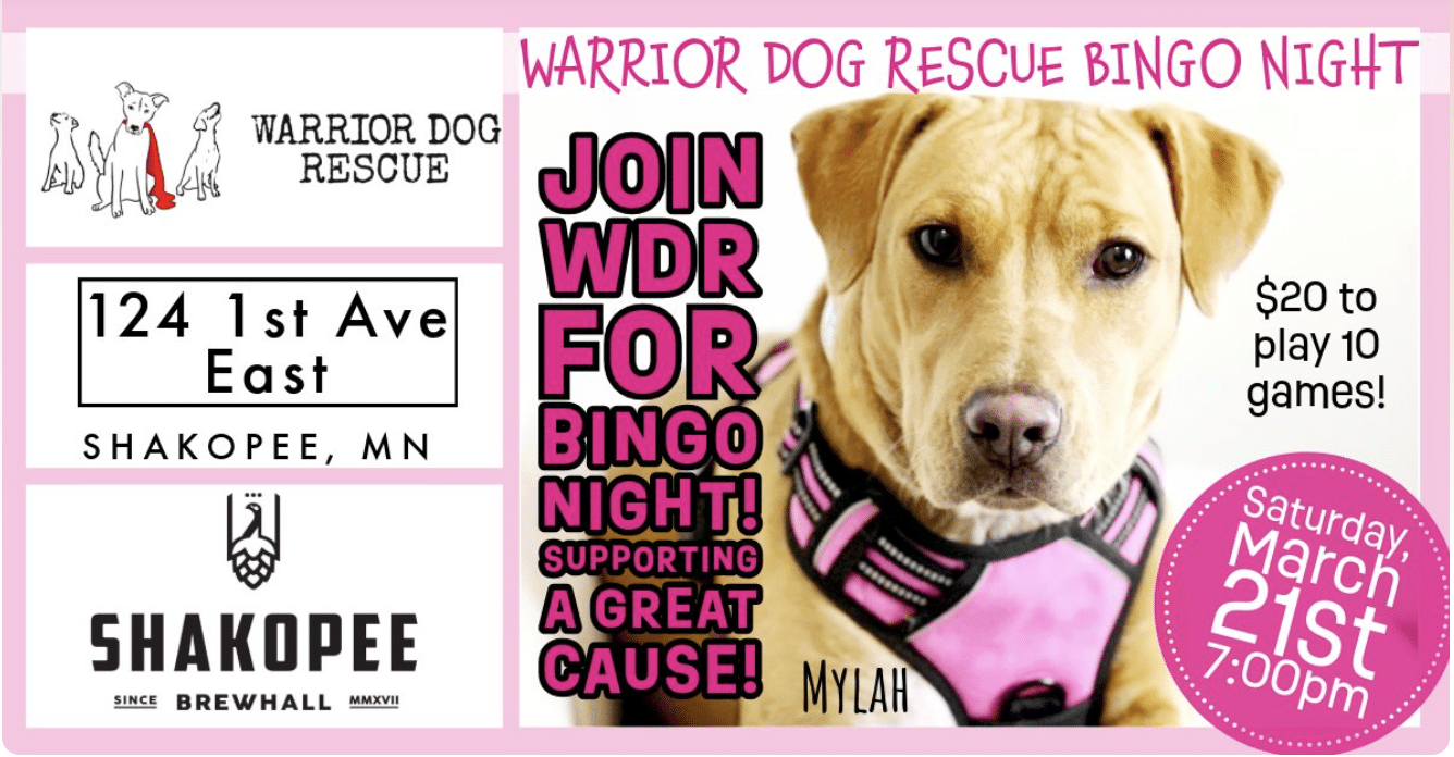 Join Warrior Dog Rescue at Shakopee BrewHall for a night of BINGO!